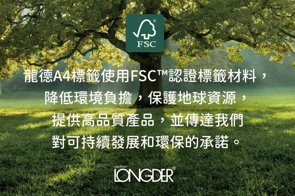 龍德數位科技 Longder 的 A4 標籤選用歐洲進口、FSC 認證的原材料。