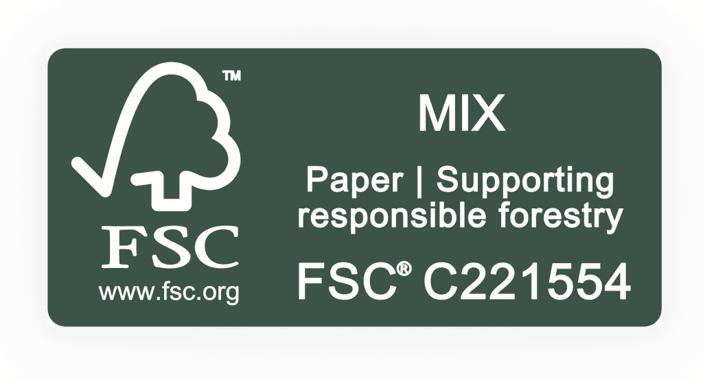 - FSC 100%:代表該產品使用的所有材料 100% 均來自良好管理、且經過 FSC 認證的森林。